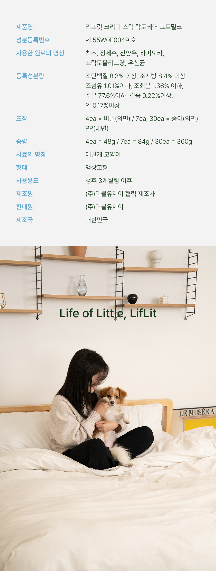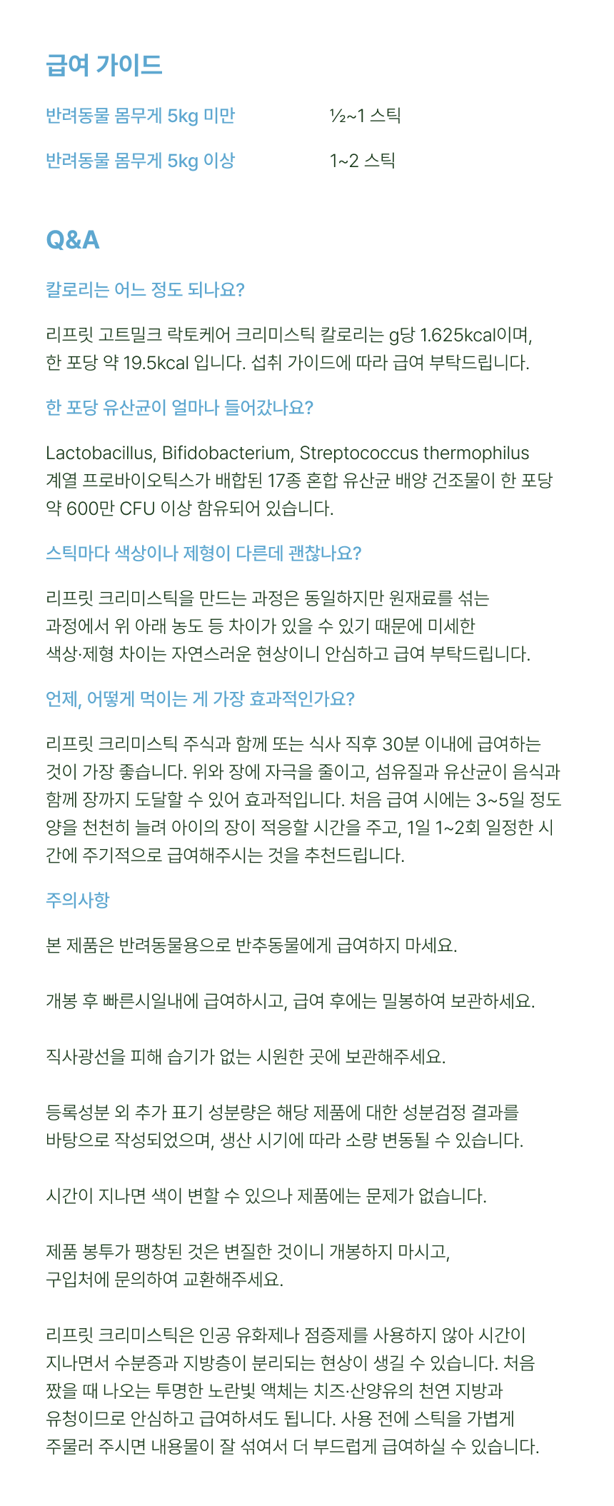 프리바이오틱스와 17종 혼합 유산균 배양 건조물을 혼합한 "신바이오틱스" 습식스틱 4ea/7ea/30ea