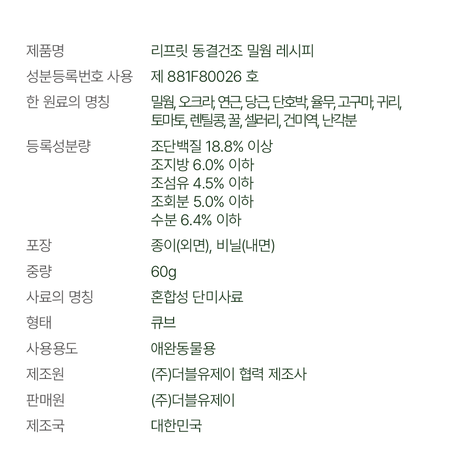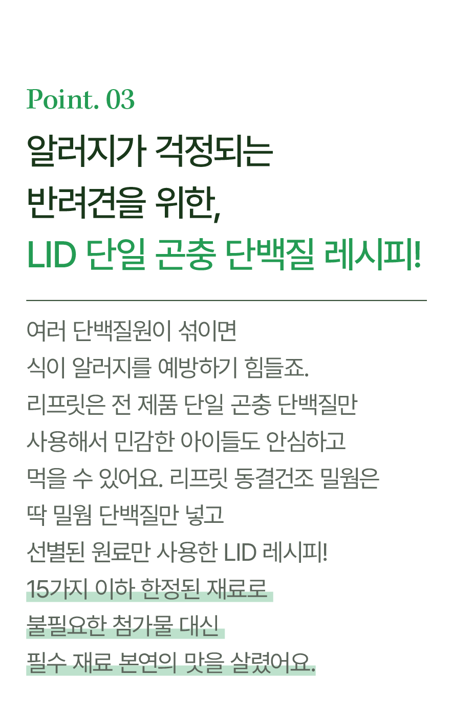 (하이포알러제닉) 단일 곤충 단백질 LID 자연식